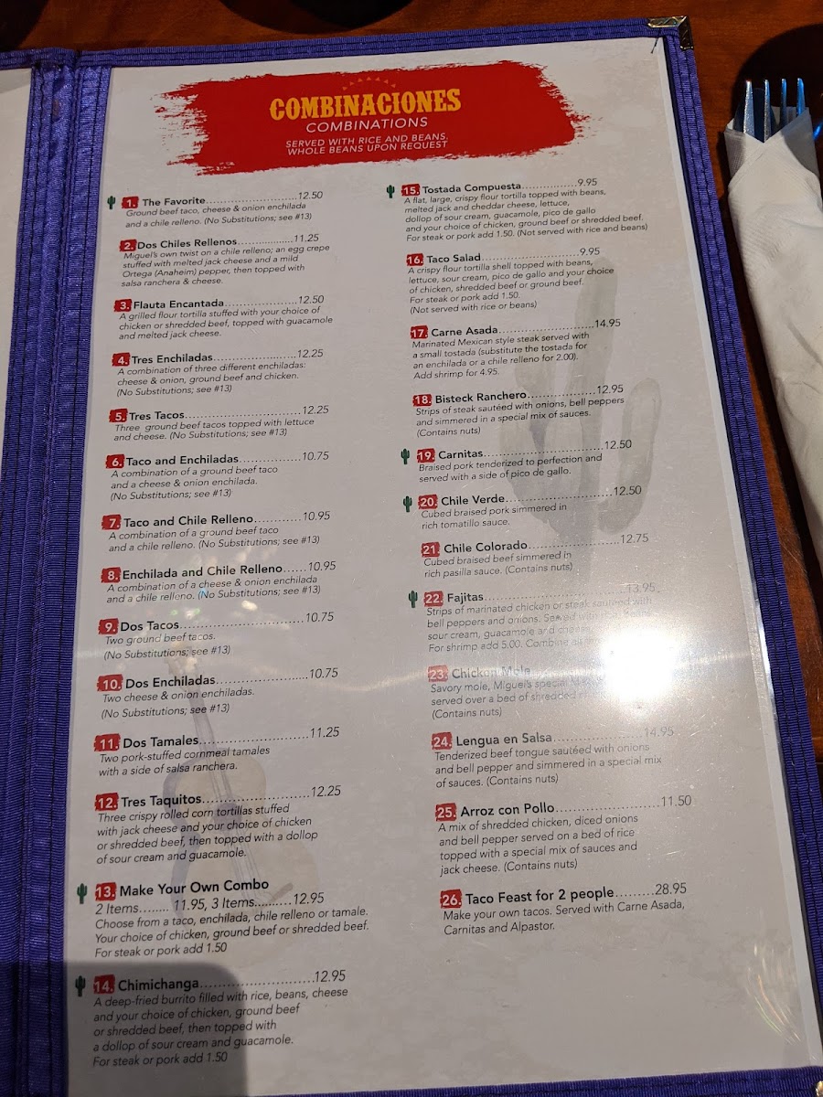 Miguels Méxican Food at the Summit Menu