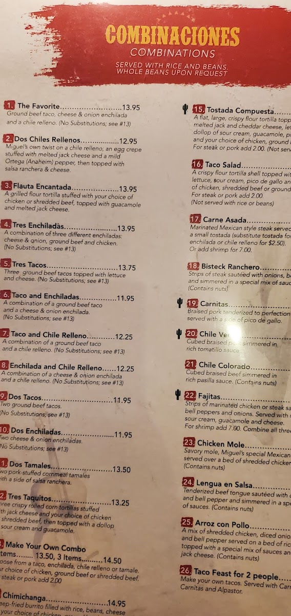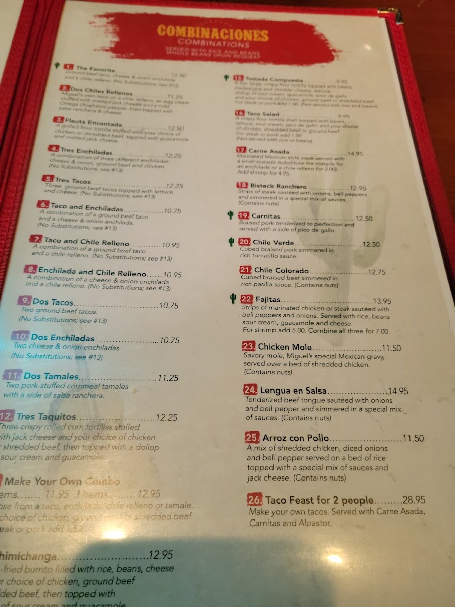 Welcome to Miguels Méxican Food at the Summit, your premier destination for authentic Mexican cuisine nestled in the heart of Reno. With a vibrant menu that tantalizes the taste buds, this restaurant specializes in a variety of combinaciones, including the mouthwatering Dos Chiles Rellenos and Tres Enchiladas. For a delightful starter, try the creamy Queso Fundido or flavor-packed Super Nachos.